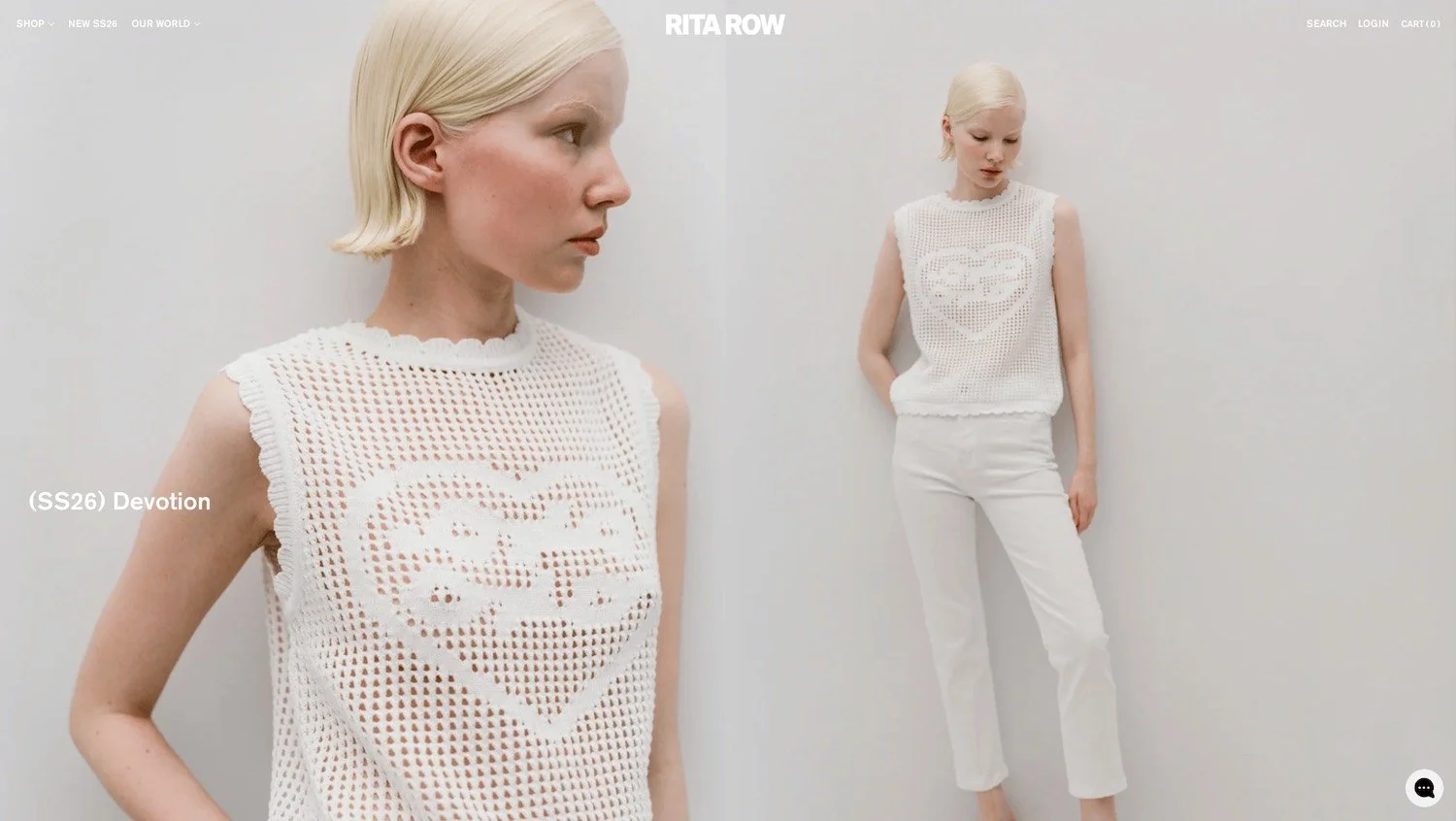Fundada en Girona, Rita Row produce moda sostenible con materiales ecológicos y certificaciones responsables. Su producción ética se divide entre España y Portugal, garantizando condiciones laborales justas. Su web tiene una estética muy cuidada, con fotografía de gran formato en exteriores naturales y fichas de producto detalladas que explican el tejido y la certificación de cada prenda. Es un buen ejemplo de cómo una marca pequeña puede competir visualmente con nombres mucho más grandes.