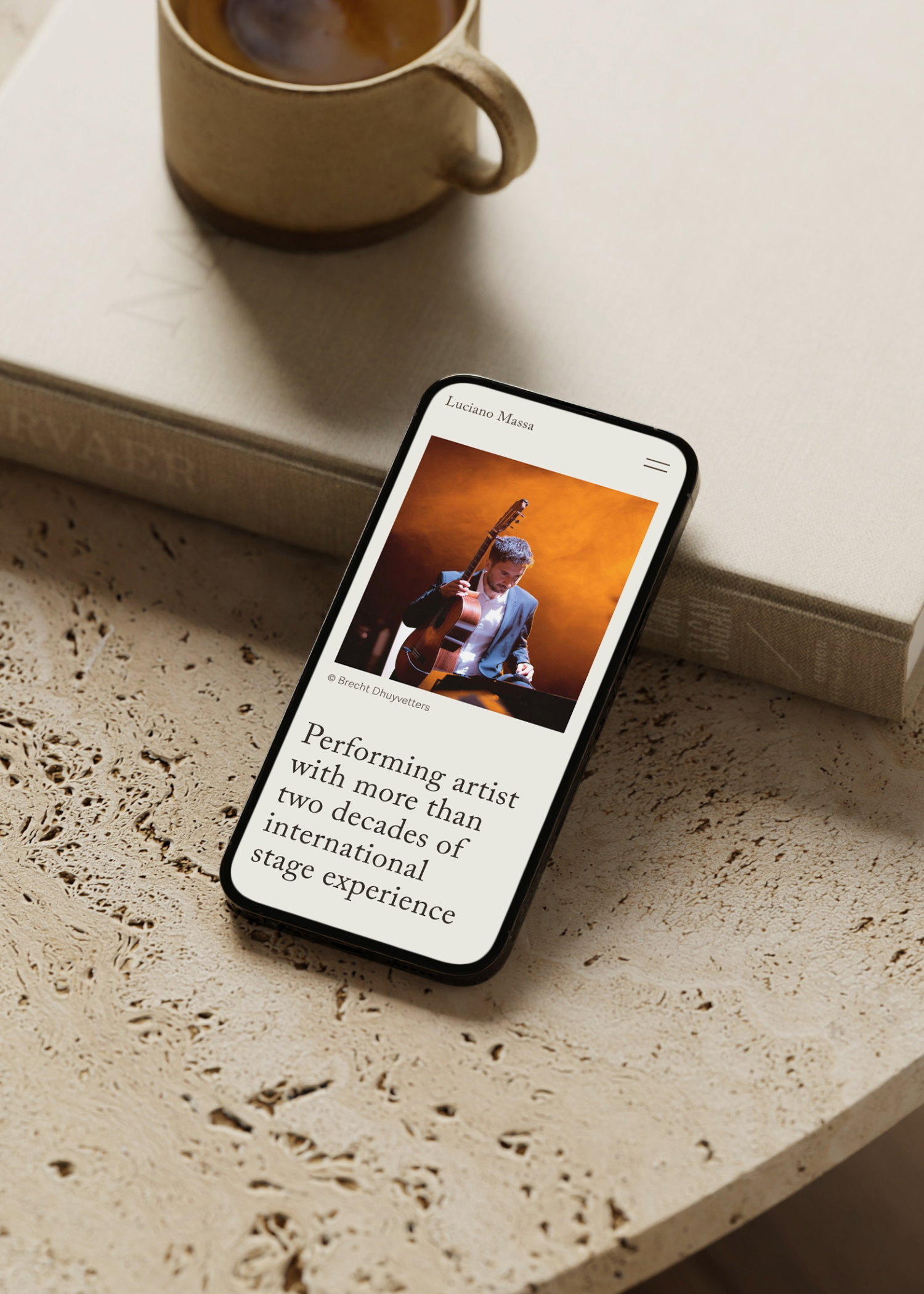 Luciano tenía una presencia digital básica que no reflejaba su trayectoria profesional ni facilitaba las oportunidades que necesitaba: booking para conciertos, inscripciones a masterclasses, y organización de huiskamerconcerten (conciertos íntimos en salones privados, muy populares en los Países Bajos, donde reside).
